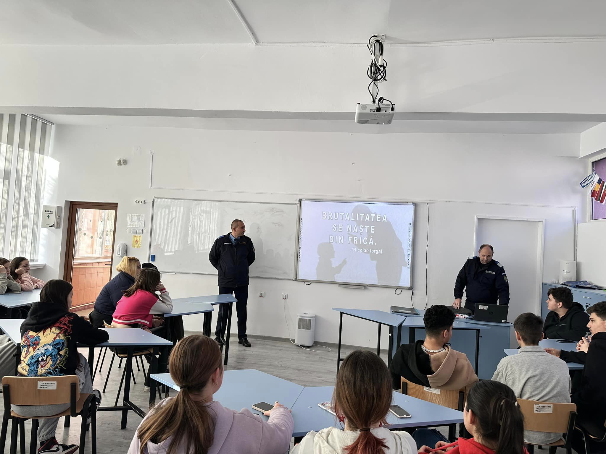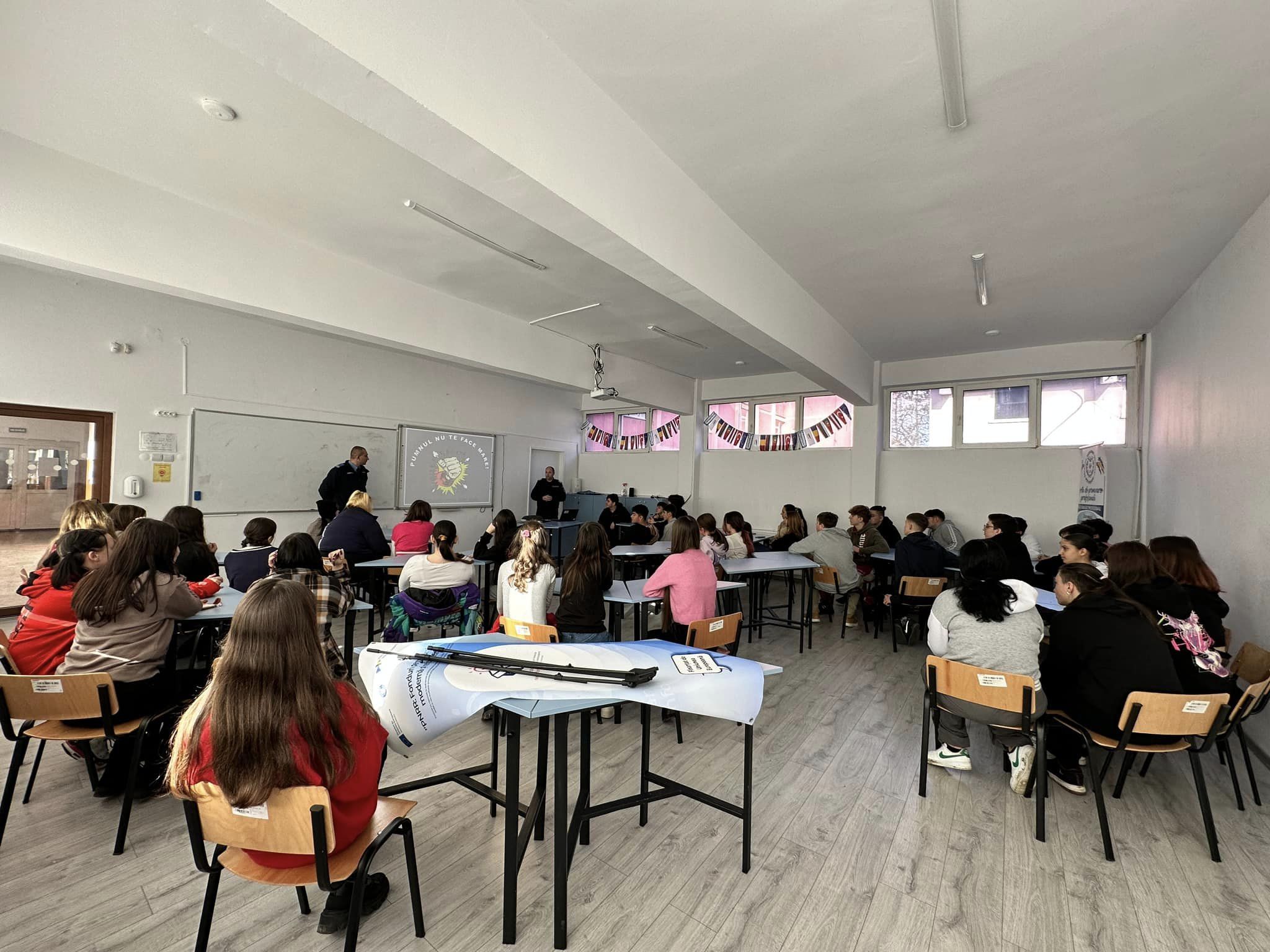 Inspectoratul de Jandarmi Județean “Decebal” Deva a organizat astăzi la clasele a IX-a , acțiunea de informare și prevenire împotriva violenței juvenile: “Pumnul nu te face mare”